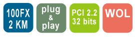 To provide easy network monitoring, RP-1450FC features LED indicators (LINK/ACT, FDX) on the bracket. These indicators allow users to oversee network and board link status, activity levels, collision detection, and full-duplex operation. The adapter is equipped with PCI 2.2 plug-and-play capability, ensuring easy installation without the need for complex configurations.