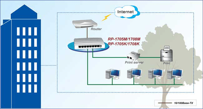 | RP- 1705M | 5-P Fast Ethernet Switch (Metal case) |