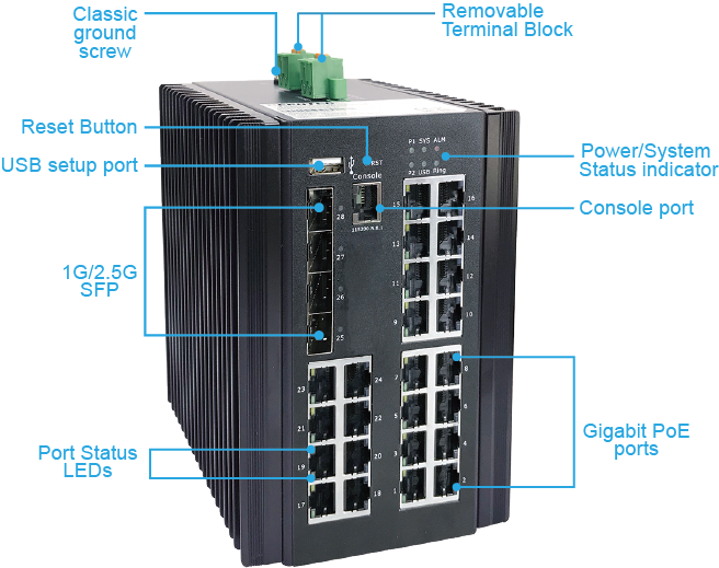 24-P Gigabit + 4-SFP(1G/2.5G) slot L2+ Managed Industrial Ethernet Switch