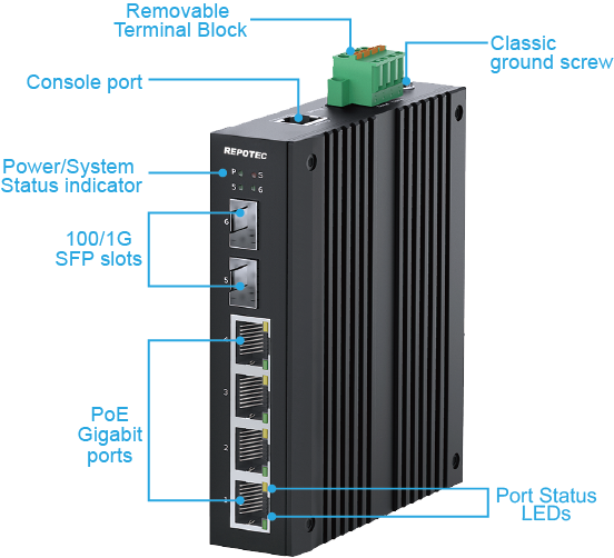 4-P Gigabit PoE + 2-SFP(100/1G) slot L2 Managed Industrial PoE Switch