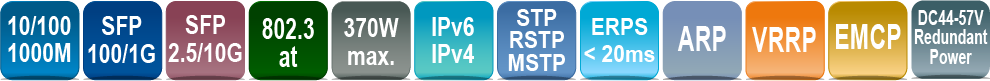 - Layer 2 features incl. VLAN, ERPS, STP/RSTP/MSTP, etc.