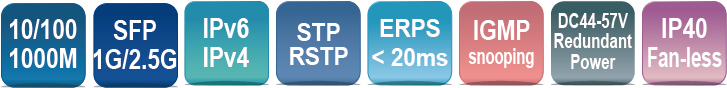 - Support G.8032 ERPS protocol, recovery time ≤20ms