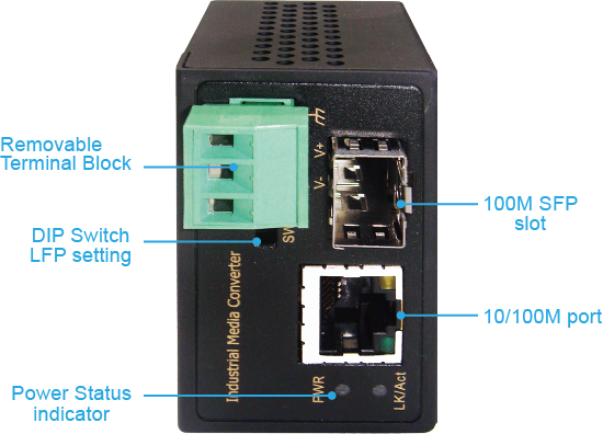 | RP-IMC601FP | 10/100Base-TX to 100Base-X SFP Industrial Media Converter |
