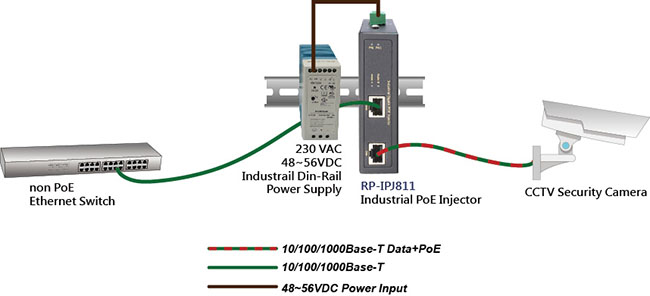 | RP-IPJ811 | 30W Industrial Gigabit PoE+ Injector, 48-56VDC |