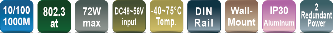- Maximum POE power 72watts at 48VDC input