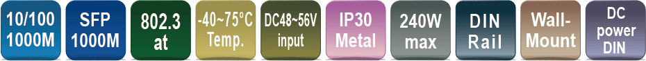 - Supports P.S.E. based on IEEE 802.3at up to 30 Watts per port