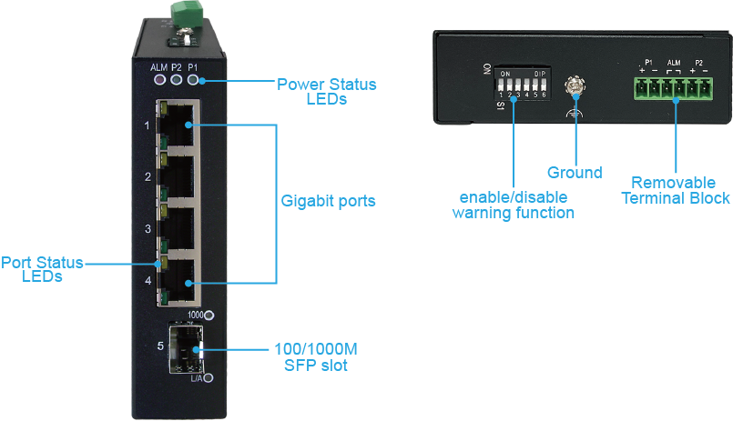 - Wide-range Redundant Power design 12~56 VDC, removable terminal block for two power input