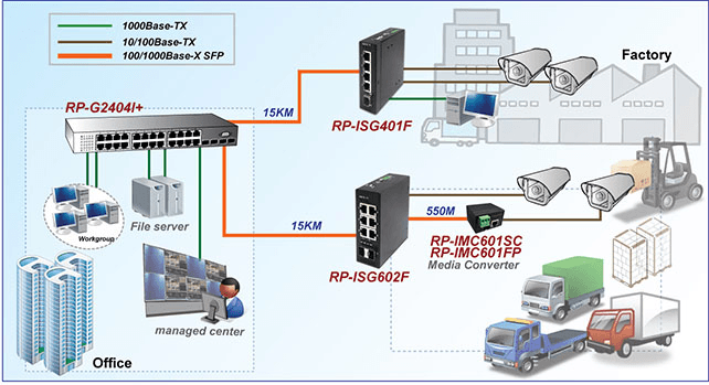 RP-ISG602F is a slim type industrial switch designed for industrial networking applications. It offers a comprehensive solution with its 6-P Gigabit Ethernet ports and 2 SFP(100/1G) slots, providing versatility for connecting various Ethernet devices such as Ethernet I/O, IP cameras, and other Ethernet switches. The switch ensures a plug-and-play experience, making it easy to set up standard industrial setups.