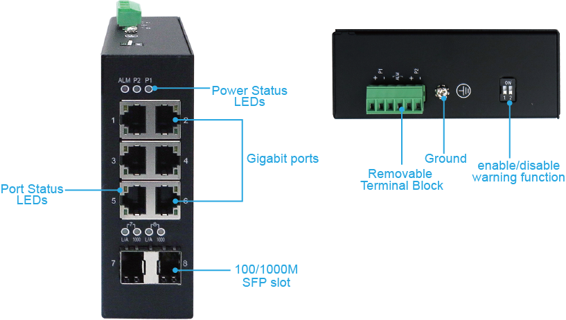 6-P Gigabit +2-SFP(100/1G) slot slim type Industrial Switch