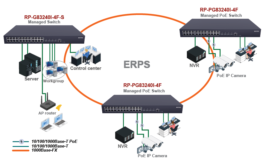 - Supports STP, RSTP, MSTP, G.8032 ERPS protocol, single ring, sub ring