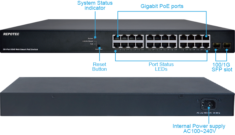 | RP-PG1526WL | 24-P Gigabit + 2-SFP(100/1G) Web-Smart+ 802.3at PoE Switch (185W) |
