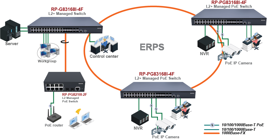 - Supports STP, RSTP, MSTP, G.8032 ERPS protocol, single ring, sub ring