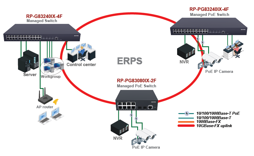RP-PG83080IX-2F supports Power over Ethernet (PoE) applications. With a total power capacity of up to 120 watts, it can efficiently power various PoE devices, making it a quick, safe, and cost-effective PoE network solution for both small businesses and enterprises.  Its comprehensive QoS features ensure prioritization and smooth data traffic management, while the rich management provide administrators with the flexibility to tailor the network to their specific requirements, bolstering overall data security.