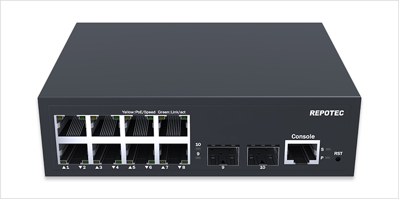 RP-PG83080IX-2F is a Layer 2 gigabit managed PoE switch with 8-port 10/100/1000Base-T RJ45 PoE ports and 2*1G/2.5G/10G SFP ports. Its powerful Layer 2 management and high-performance switching offer a cost-effective Gigabit Ethernet solution for enterprise networks.
