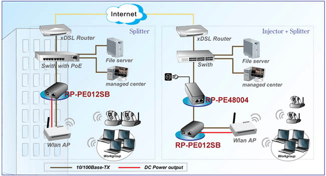 | RP-PE48004 | 10/100M 48V/0.4A PoE Injector |