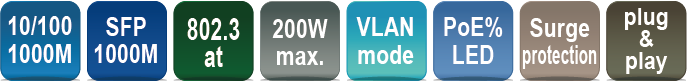 - Single port: 30W, total PoE budget: 200W.