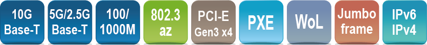 - 10G/5G/2.5G/1G/100M auto-negotiation.