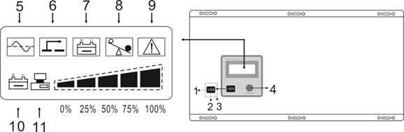 | Display & Control Panel | Control Panel | Power On/Off & UPS Test button, Battery charge current adjustment | ||||