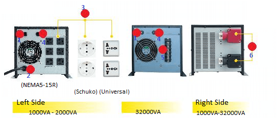 | Capacity | 1000VA/600W | 1500VA/900W | 2000VA/1200W | 3200VA/2000W | ||