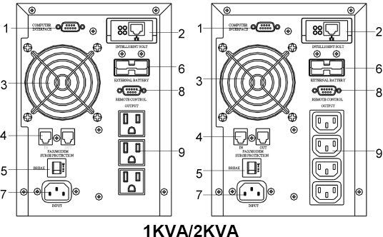 | Interface | RS-232 Interface | UPSilon2000 monitoring software for Windows all, Unix systems and Novell. | ||